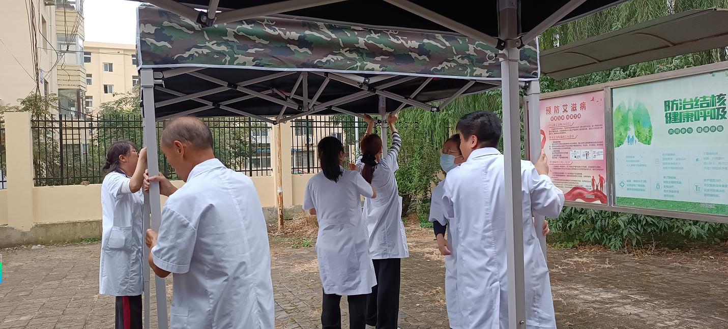 根据近期天气预报显示,体检日下午将有降雨。为避免新生在户外排队时被雨淋湿,影响健康与体验,校医院提前部署,组织工作人员利用中午休息时间,紧急在体检排队区域搭建起遮雨棚。从场地规划到支架固定,从篷布铺展到边角加固,工作人员齐心协力、高效配合,在午后降雨来临前顺利完成搭建工作。