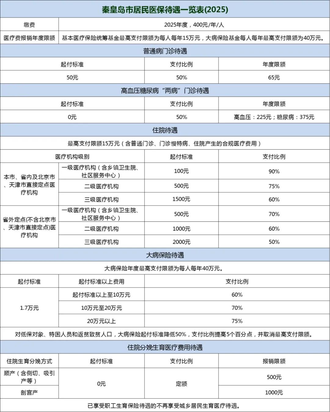 秦皇岛市居民医保待遇一览表(2025)